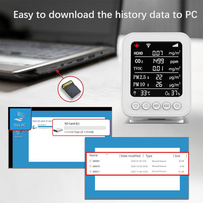 Air data can be exported to a computer in CSV format to generate historical data reports. This enables users to trace the changing patterns of air quality (e.g., the impact of seasons or ventilation frequency on pollution), making it suitable for scenarios requiring data review such as homes and laboratories.