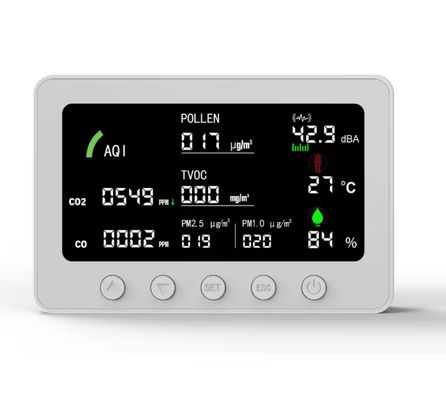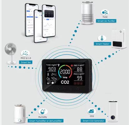 Surveillance de la qualité de l'air intérieur en temps réel : détecte le CO₂, les PM2.5/PM1.0, les COVT, la température et l'humidité avec une grande précision