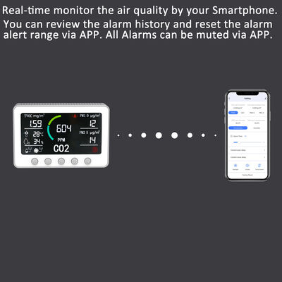 Améliorez votre environnement intérieur avec le Smart Air Quality Monitor conçu pour les maisons technologiques.L'appareil moderne va au-delà de la détection de la qualité de l'air de base, avec un puissant système multisensoriel qui surveille en permanence le dioxyde de carbone (CO2), Monoxyde de carbone (CO), PM2.5, PM1.0, les COVT (composés organiques volatils totaux), la température, l'humidité et même les niveaux de pollen.