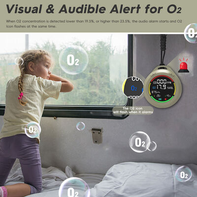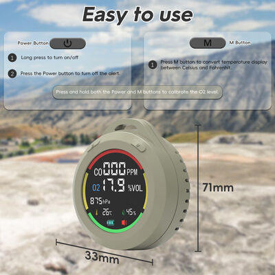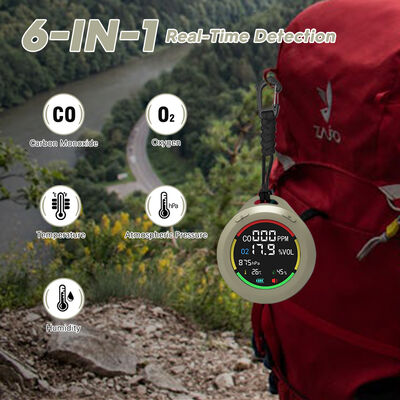 [Conception 6 en 1 et portable] Le détecteur de monoxyde de carbone pour camping-car détecte le CO, l'O2, la pression atmosphérique, l'altitude, la température et l'humidité en temps réel. Avec une taille mini de 2,8 * 1,3 pouces, il peut être facilement mis dans une poche. De plus, il est doté d'une lanière de 7,8 pouces, peut être suspendu et se tenir debout.