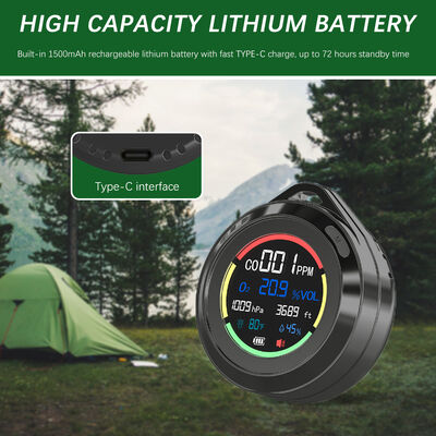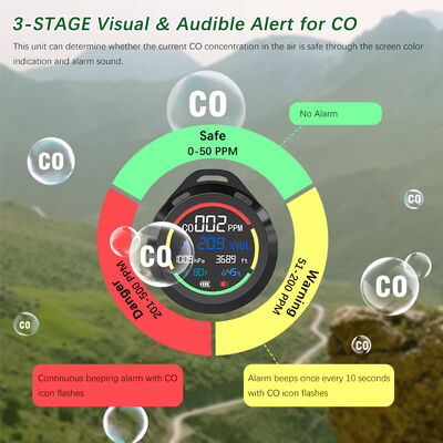 [Conception 6 en 1 et portable] Le détecteur de monoxyde de carbone pour camping-car détecte le CO, l'O2, la pression atmosphérique, l'altitude, la température et l'humidité en temps réel. Avec une taille mini de 2,8 * 1,3 pouces, il peut être facilement mis dans une poche. De plus, il est doté d'une lanière de 7,8 pouces, peut être suspendu et se tenir debout.